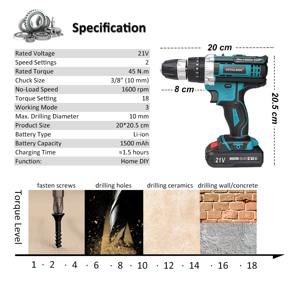 0 Response to "Don't lose it - 2 Speed 21V Impact Drill Impact Screwdriver Electric Wireless Power Tools Lithium-Ion Battery For Drilling In Steel Wood Ceramic"