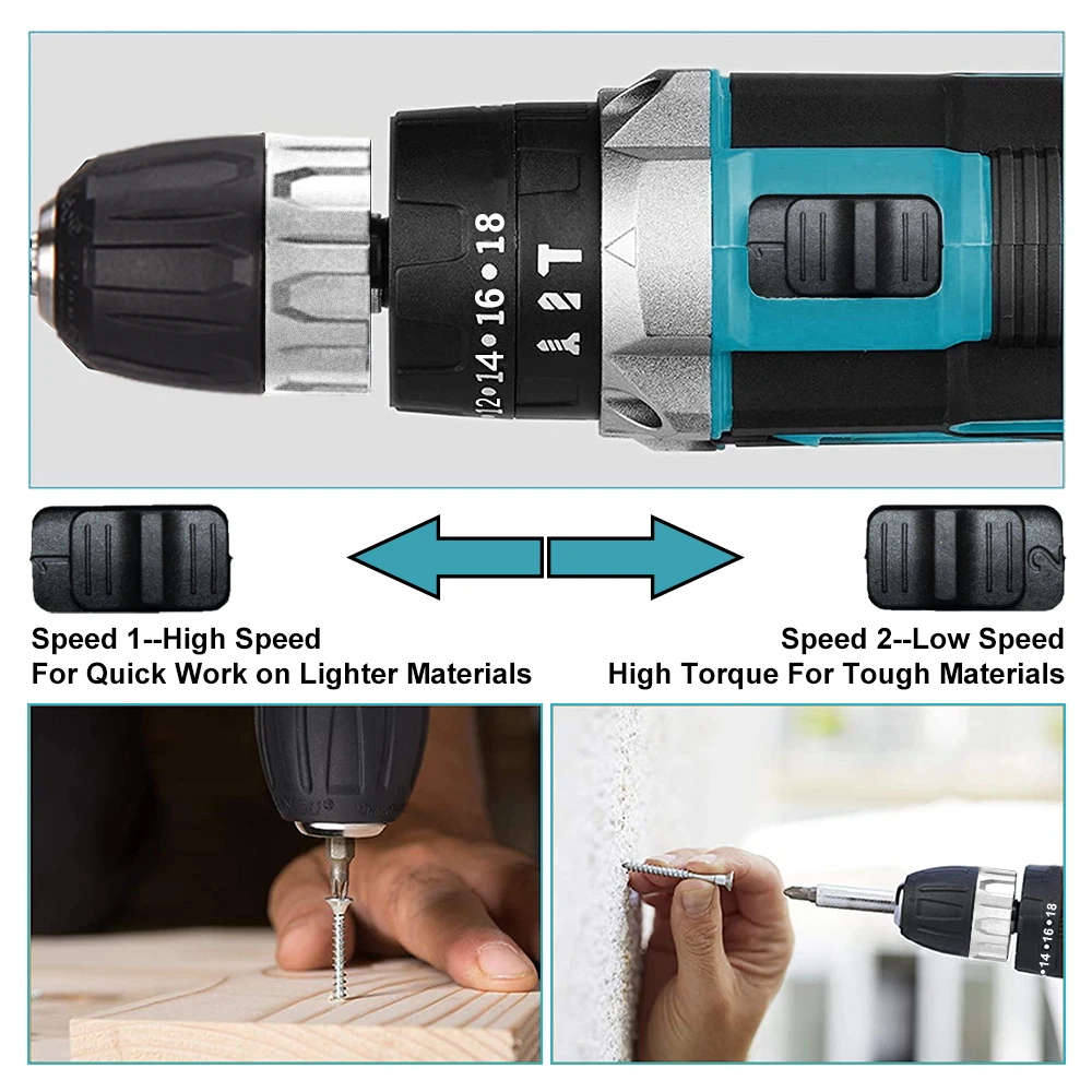 Don't lose it - 2 Speed 21V Impact Drill Impact Screwdriver Electric Wireless Power Tools Lithium-Ion Battery For Drilling In Steel Wood Ceramic